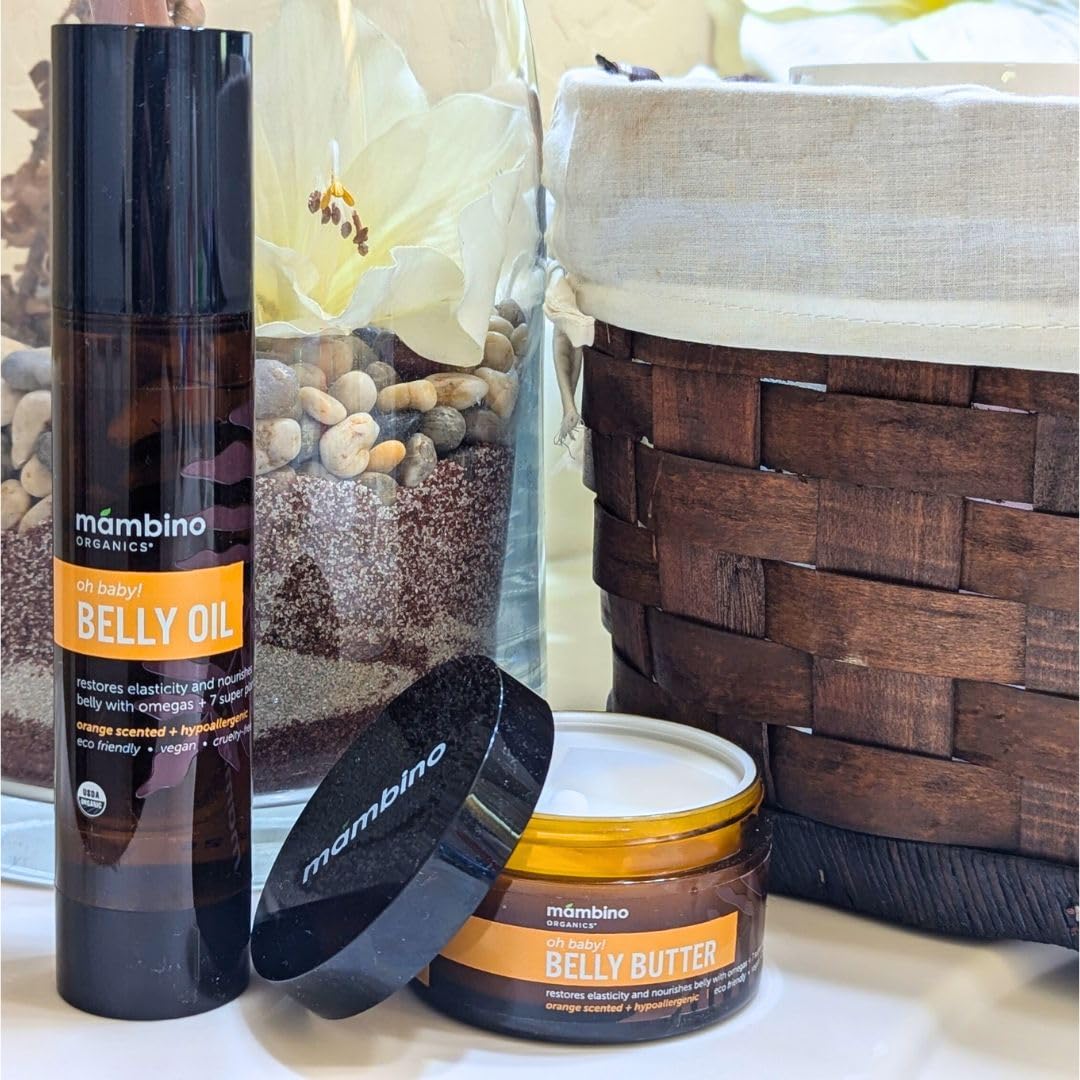 Mambino Organics Oh Baby! Belly Oil is a luxurious organic elasticity oil enriched with Egyptian Calendula, Vietnamese Tamanu, and Dutch Shea, specifically crafted for pregnancy to combat stretch marks.