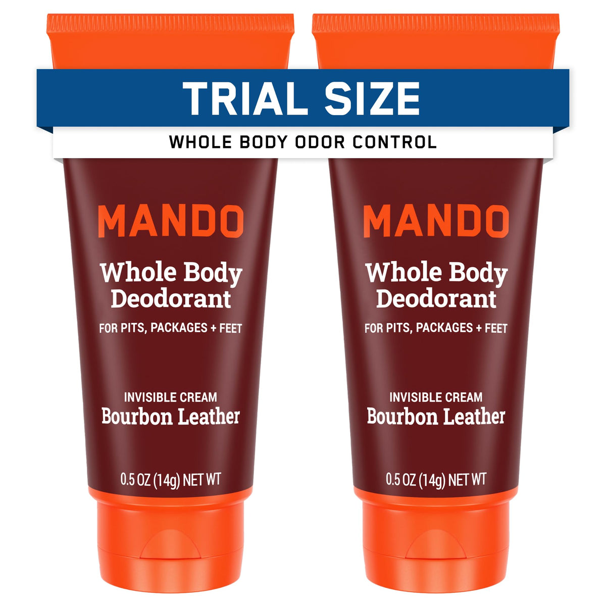 Mando Whole Body Deodorant - Mini Travel Size Invisible Cream Tube - 72 Hour Odor Control - Aluminum and Baking Soda Free, Skin Safe - .5 oz (Pack of 2) (Bourbon Leather)