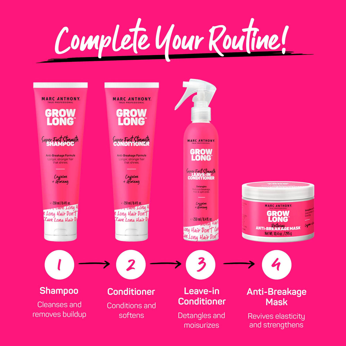Transform your hair with Marc Anthony Leave-In Conditioner Spray & Detangler. This 2-pack set is specially formulated to promote hair growth, reduce frizz, and prevent split ends and breakage. Enriched with Vitamin E, Caffeine, and Ginseng, it's the ultimate solution for curly, dry, and damaged hair.