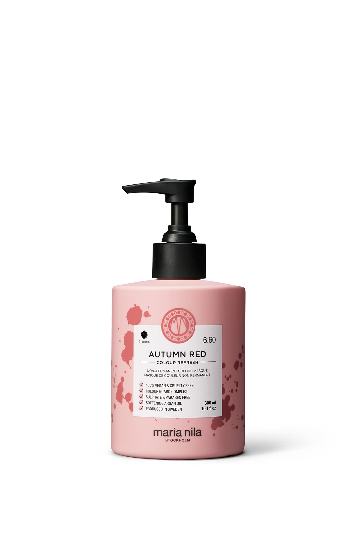 Maria Nila Colour Refresh in Autumn Red is a 10.1 fl oz hair mask that rejuvenates red hair tones with semi-permanent pigments. This vegan and sulfate/paraben-free mask offers a vibrant color boost while nourishing your hair.