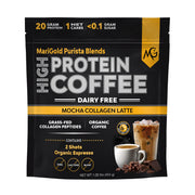 MariGold High Protein Collagen Coffee in Mocha Collagen Latte flavor is a dairy-free energy boost with 20g of grass-fed Type I & III collagen peptides. Includes 2 shots of organic espresso in a 1 lb bag for 15 servings.