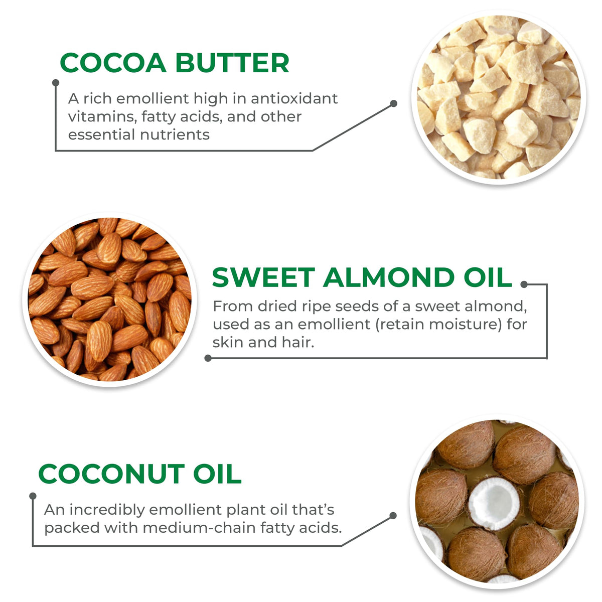 Ingredients: Hydrogenated Polydecene, Cocoglycerides, EthylenePropyleneStyrene Copolymer, Dimethicone, Brassica Glycerides, Persea Gratissima Avocado Oil, Glyceryl Behenate, Microcrystalline Cellulose, Polyhydroxystearic Acid, Jojoba Esters, Helianthus Annuus Sunflower Seed Wax, Theobroma Cacao Cocoa Seed Butter, Butyrospermum Parkii Shea Butter, DimethiconeVinyl Dimethicone Crosspolymer, Aloe Barbadensis Leaf Extract, Cocos Nucifera Coconut Oil, Glyceryl Rosinate, Beeswax, Hydrogenated Vegetable Oil, Prunus Amygdalus Dulcis Sweet Almond Oil, ButyleneEthyleneStyrene Copolymer, Linoleic Acid, Dimethicone Crosspolymer, Acacia Decurrens Flower Cera, Oleo Europaea Olive Oil Unsaponifiables, Linolenic Acid, Raspberry Seed OilTocopheryl Succinate Aminopropanediol Esters, Polyglycerin3, Pentaerythrityl Tetraditbutyl Hydroxyhydrocinnamate, Silica, Silica Silylate, Chamomilla Recutita Matricaria Flower Extract, Tetrahexyldecyl Ascorbate, Tocopherol, Parfum Fragrance
