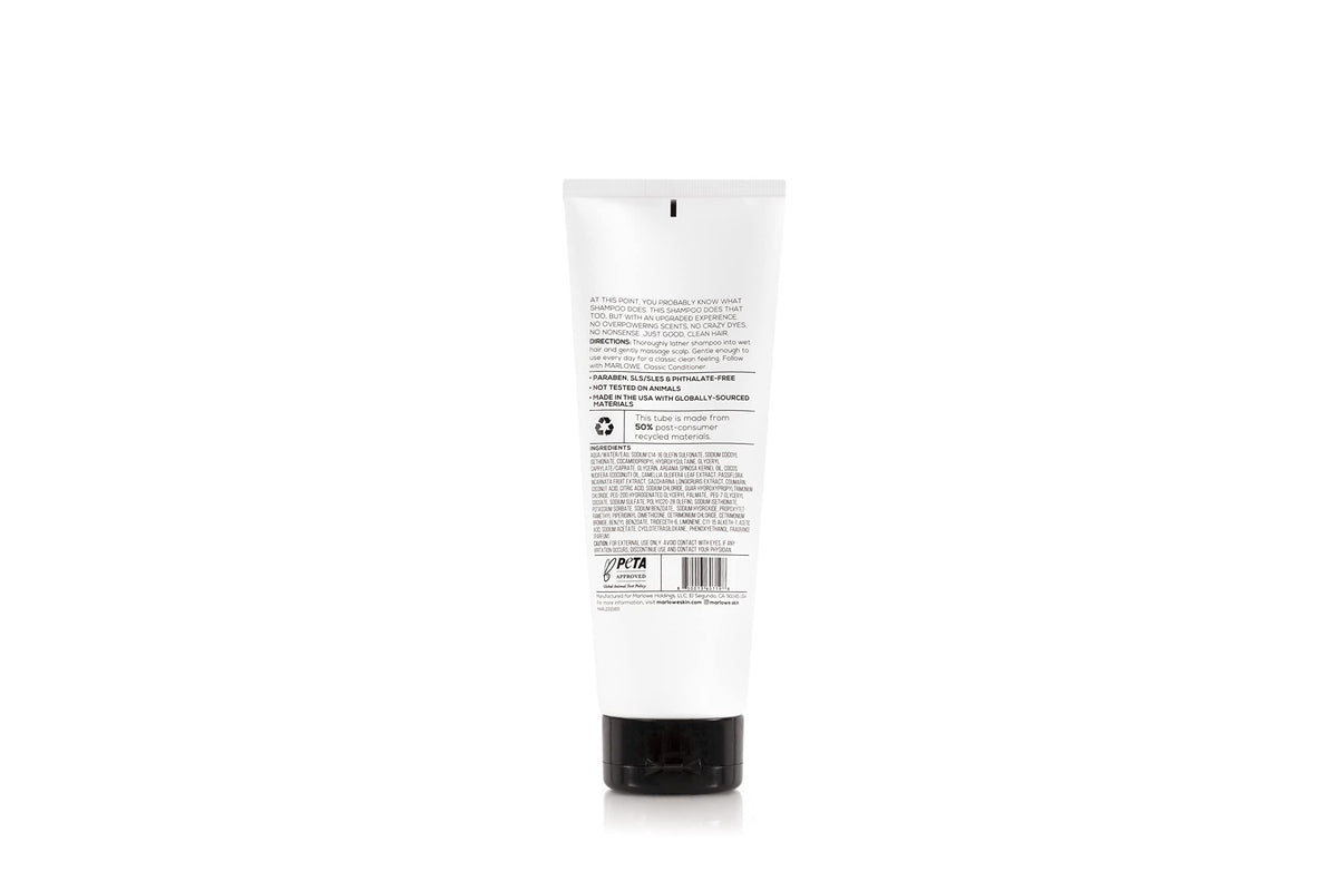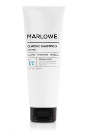 The MARLOWE. No.172 Classic Mens Shampoo is a clarifying and invigorating hair cleanser enriched with moisturizing Argan Oil and Coconut Oil. Suitable for all hair types, this paraben and phthalate-free formula refreshes and revitalizes the hair, leaving it clean and nourished.