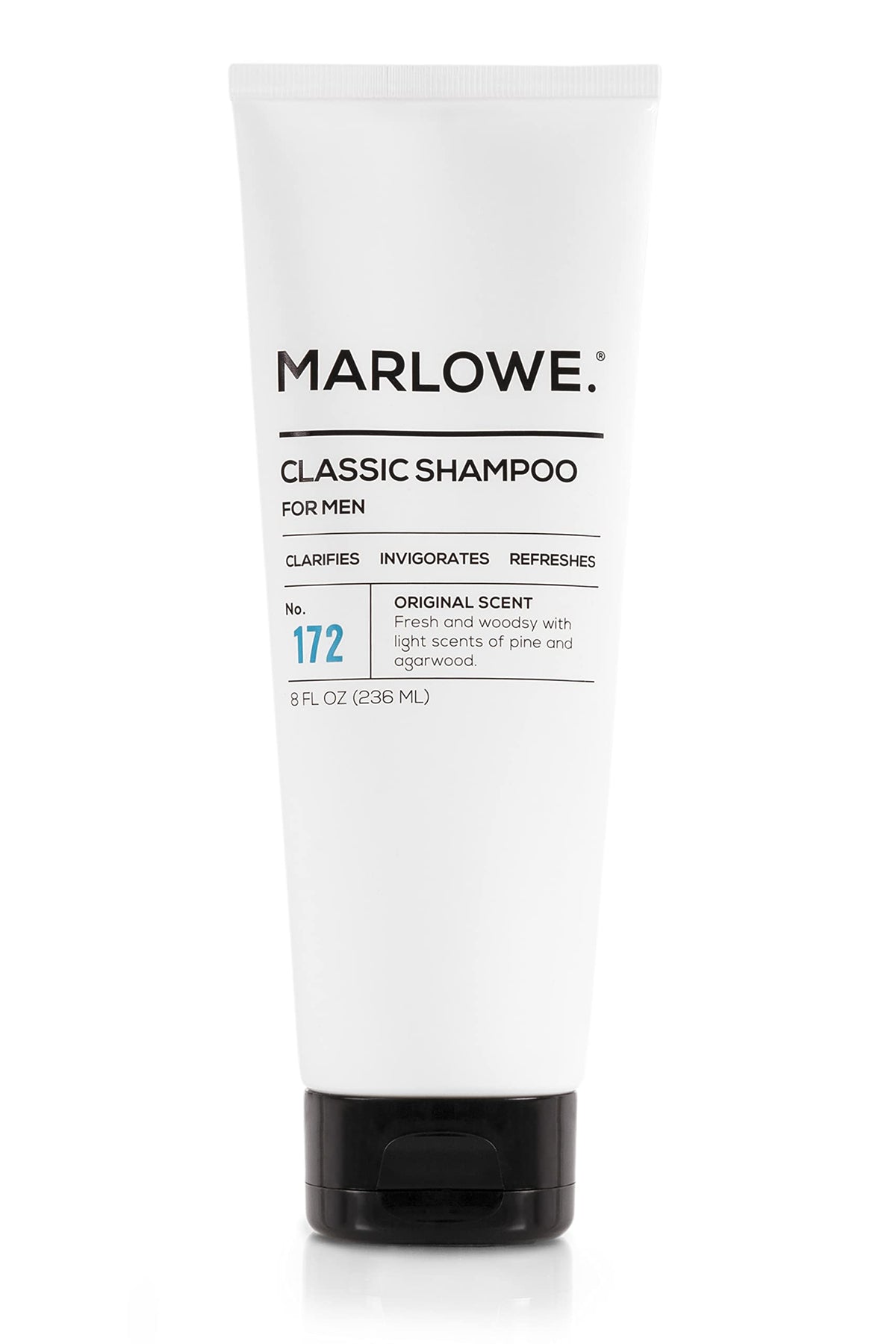 MARLOWE. No.172 Classic Mens Shampoo, Clarifies, Invigorates and Refreshes Hair with Moisturizing Argan Oil & Coconut Oil, All Hair Types, Paraben & Phthalate Free, 8 Fl Oz