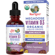 MaryRuth Organics Vitamin D3 Liquid Drops offer a megadose of 4000 IU of Vitamin D in a convenient liquid form. This USDA organic, vegan, and gluten-free supplement supports immune function, bone health, and overall well-being for both adults and kids.