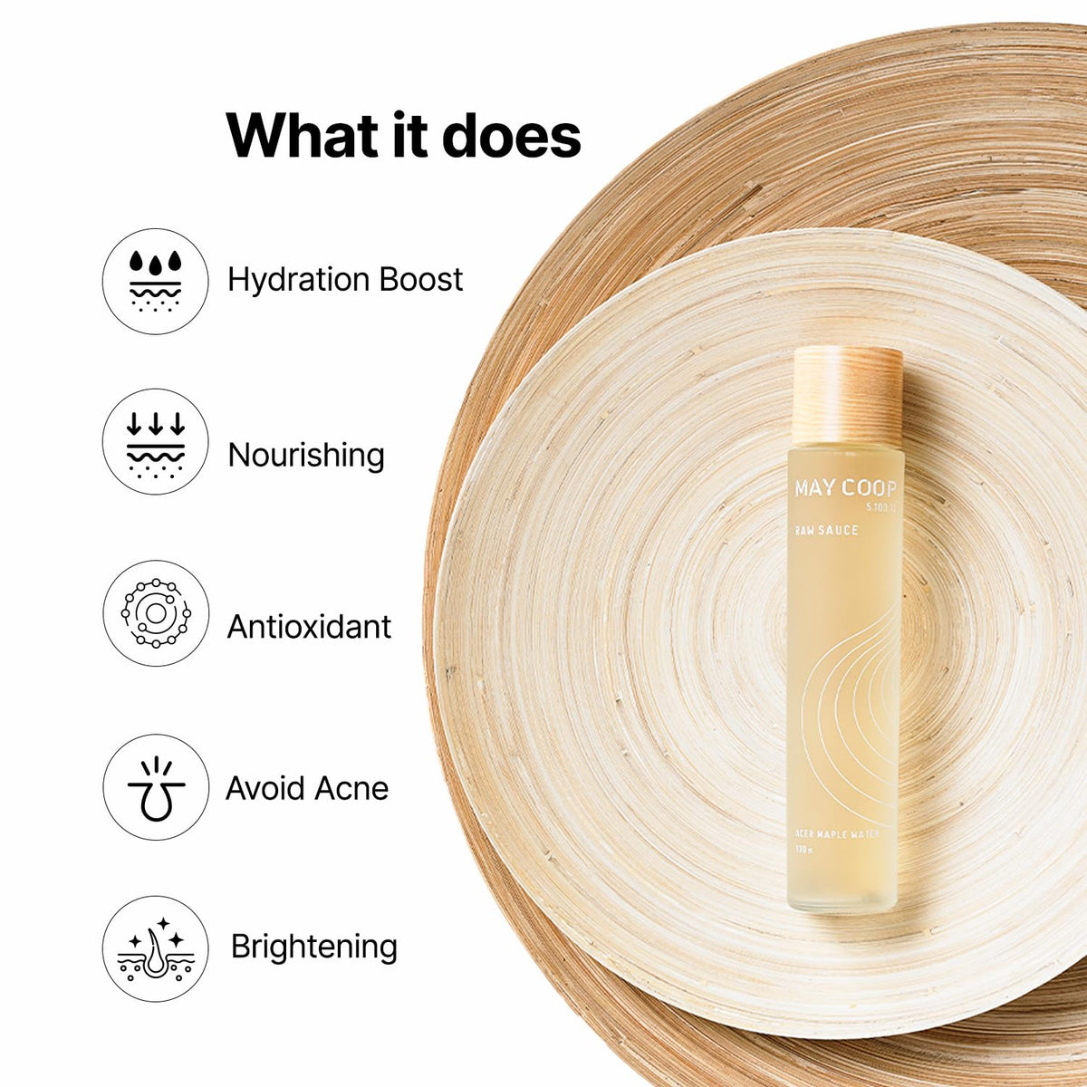 Experience the hydrating power of May Coop Raw Sauce. This 150 ml bottle by MAYCOOP is a versatile essence that revitalizes and nourishes your skin, leaving it glowing and healthy.