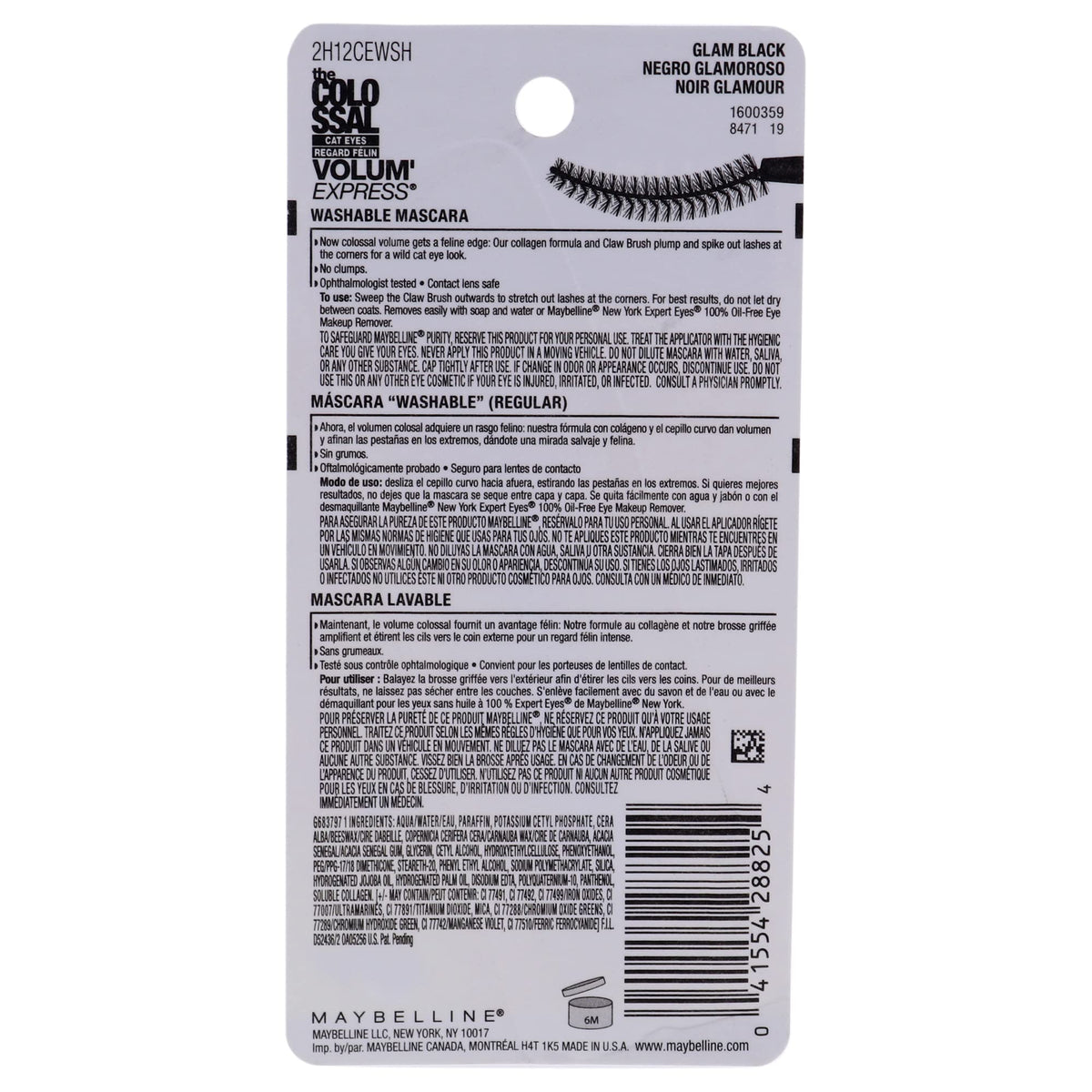 Maybelline New York Volume Express Colossal Cat Eyes Washable Mascara, Glam Black, 0.31 Fl Oz