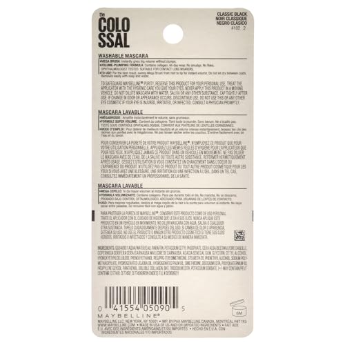 Maybelline Volum' Express Colossal Washable Mascara Makeup, Classic Black Mascara, 1 Count