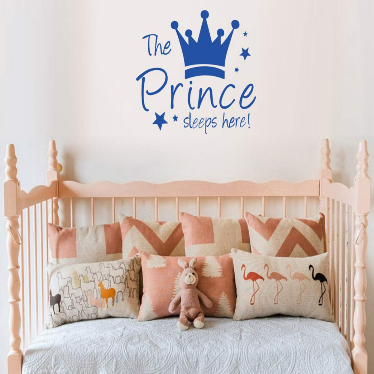 Maydahui 2 PCS Wall Sticker The Prince/Princess Sleep Here 12.6 Inch Little Crown Star Art Quotes Wall Decal Decor for Living Room Bedroom