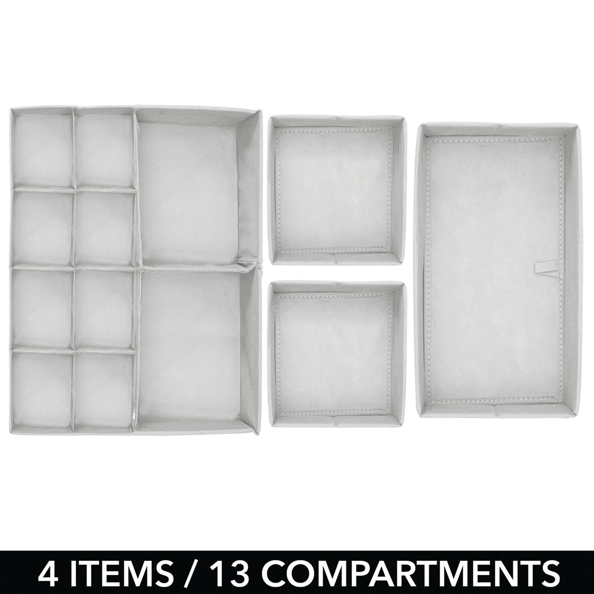 mDesign Fabric Drawer Organizer Bins, Kids/Baby Nursery Dresser, Closet, Shelf, Playroom Organization, Hold Clothes, Toys, Diapers, Bibs, Blankets, Set of 4, 2 Pack, Gray/White Polka Dot
