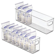 The mDesign Plastic Long Stackable Storage Organizer Container is a versatile solution for your kitchen, pantry, fridge, or cabinet organization needs. With convenient handles and a clear design, it's perfect for storing items like breast milk.