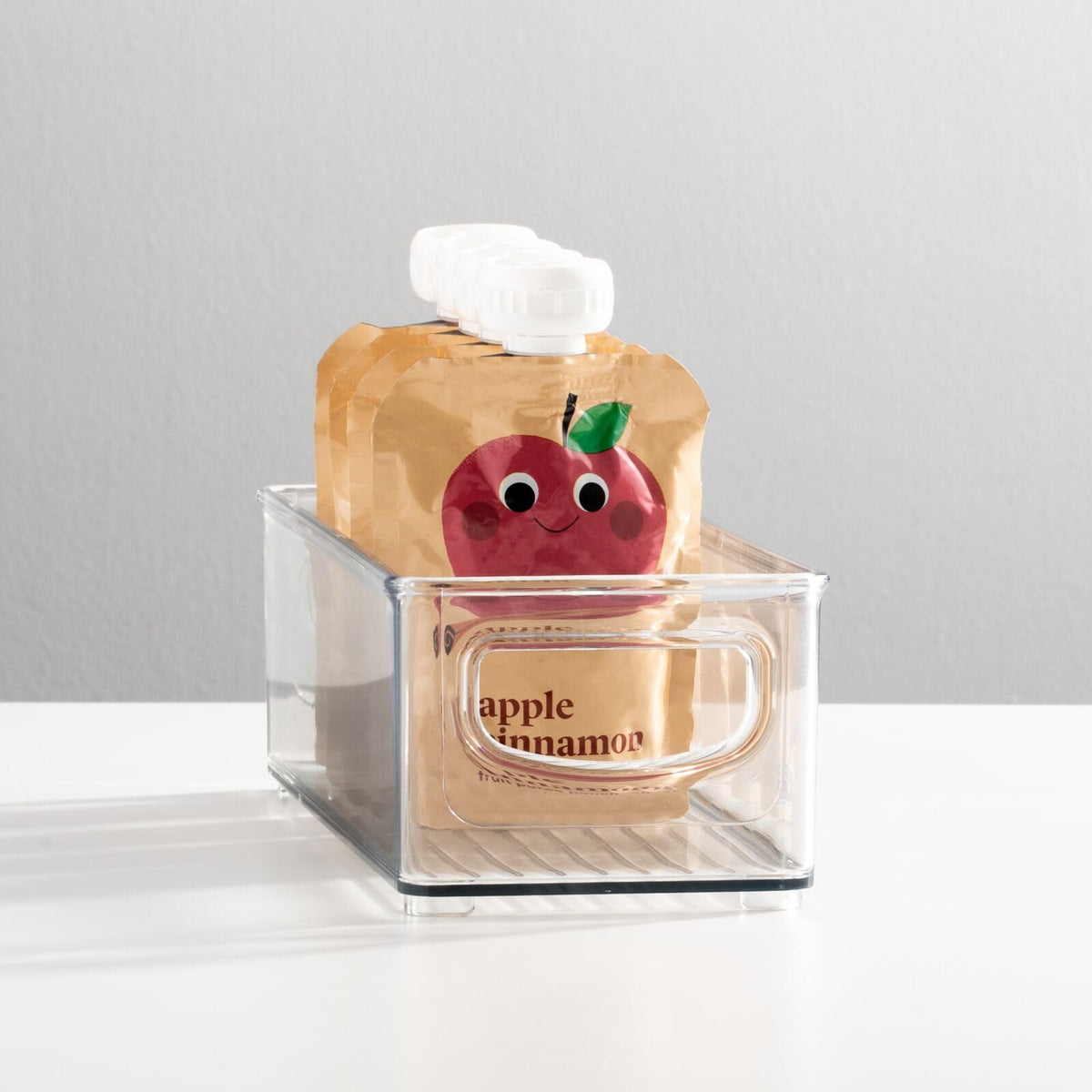 mDesign Small Plastic Nursery Storage Container Bins with Handles for Organization in Cabinet, Closet or Cubby Shelves - Organizer for Baby Food, Bibs, Formula - Ligne Collection - Clear