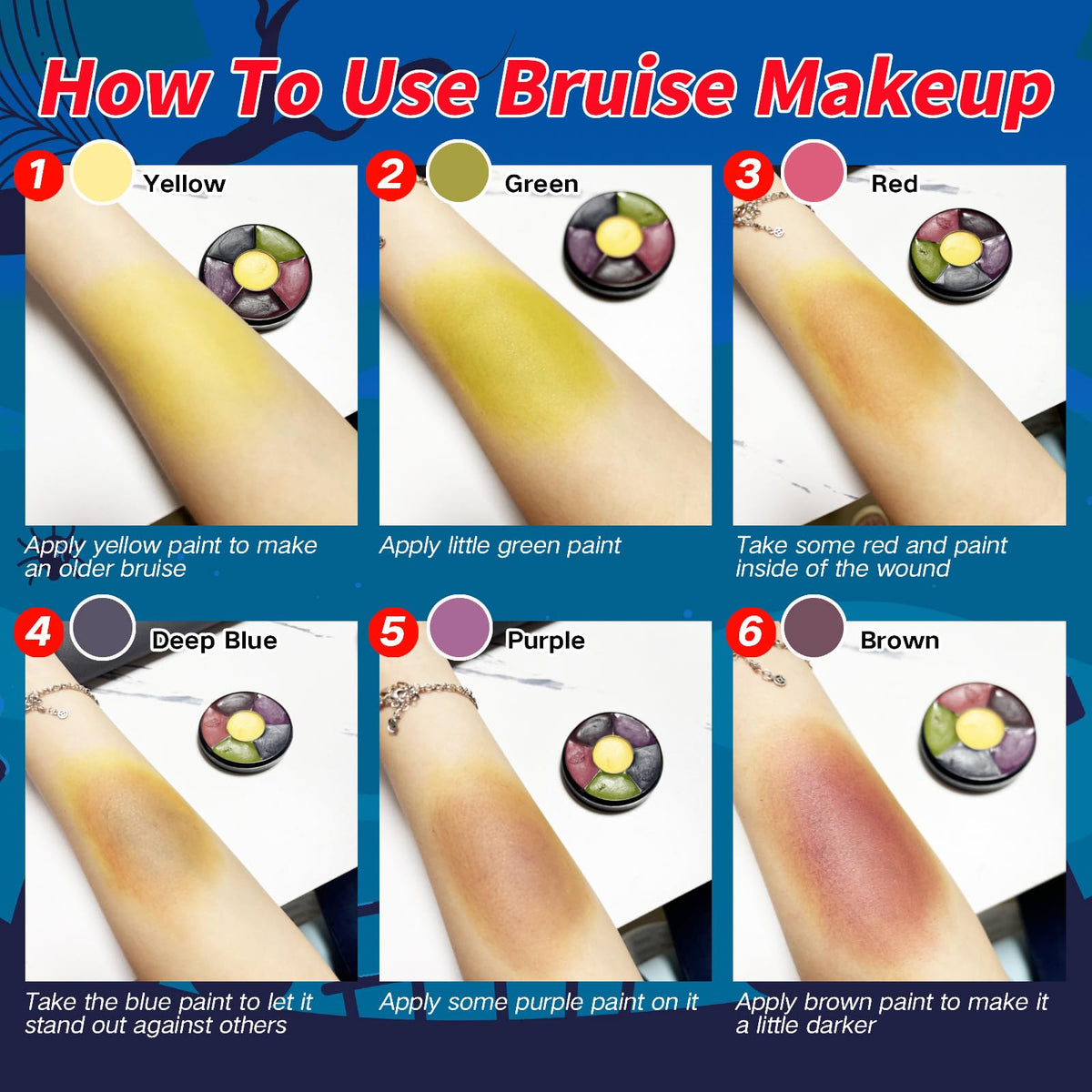 MEICOLY 6 Color Bruise Wheel for Special Effects, 2.1oz Fake Blood Spray Blood Splatter Theatrical Halloween Liquid Blood for Clothes Face Body Paint with 3pcs Stipple Sponges