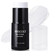 MEICOLY Clown White Face Body Paint Stick(1.06 Oz),Foundation Cream Makeup,Face Paint for Halloween Joker Zombie Vampire Skeleton Skull Special Effects Mime Makeup,White Eye Black Stick for Sports