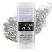 MEICOLY Silver Body Glitter Stick,Waterproof Halloween Face Glitter Gel,Chunky Glitter Face Paint,Mermaid Sequin Hair Glitter Makeup,Sparkle Body Glitter for Women and Kid,Festival Accessories Glitter