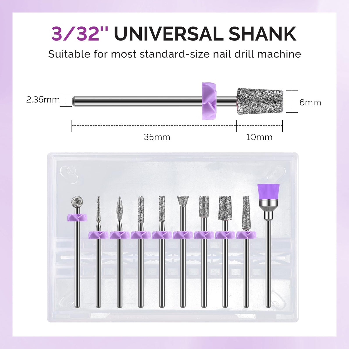 Enhance your nail care routine with the MelodySusie Nail Drill Bits set. This 10-piece diamond sanding bit set comes with 40 small sanding bands in various grits, along with a 3.1mm mandrel bit. Perfect for nail gel polish removal, acrylic nail manicures, and nail preparation.