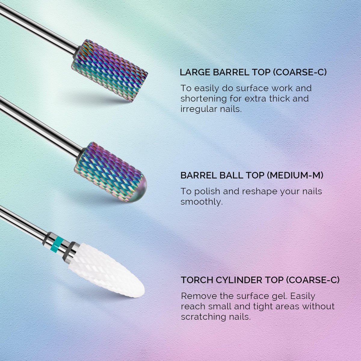 MelodySusie Nail Drill Bits Set, 7Pcs Professional Tungsten Carbide Ceramic Acrylic Nail File Drill Bit for Manicure Pedicure Cuticle Gel Nail Polishing