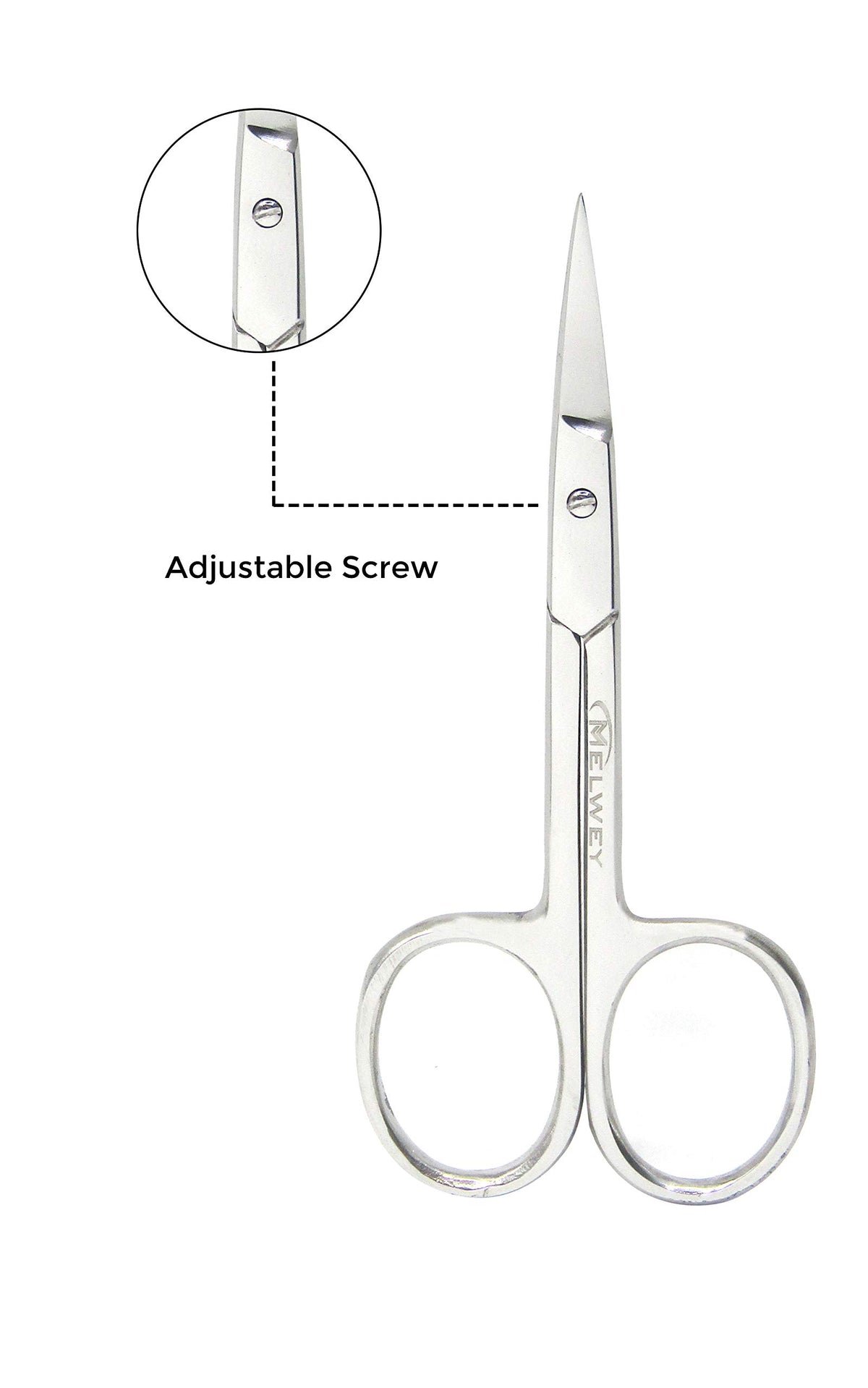 Melwey Eyebrow Scissors & Small Cuticle Scissors, Curved Blade Manicure TSA Scissors. Stainless-Steel Scissors for Eyelashes, Facial Hair, Pubic, Men Moustache & Beard.