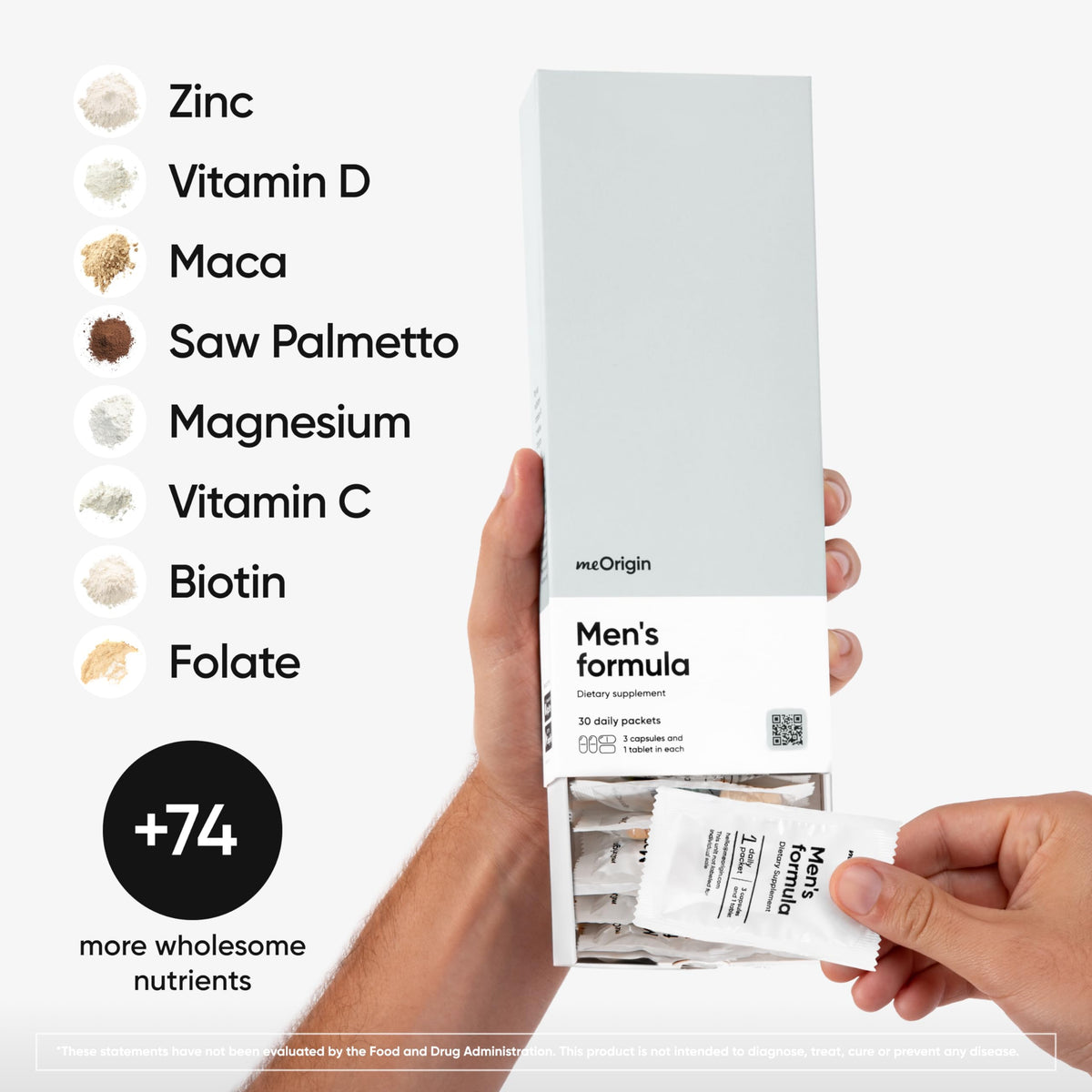 meOrigin Multivitamin for Men is an all-in-one supplement complex designed to support men's health. With key nutrients like Zinc, Vitamin D, C, B12, and more, this product offers 82 nutrients in a 30-day supply.