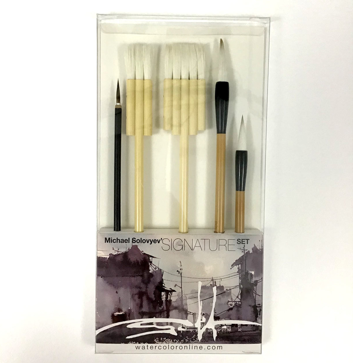 Unleash your creativity with the Michael Solovyev Signature Watercolor Brush Set. This 5-piece set features handcrafted natural hair brushes for precise and beautiful artwork.