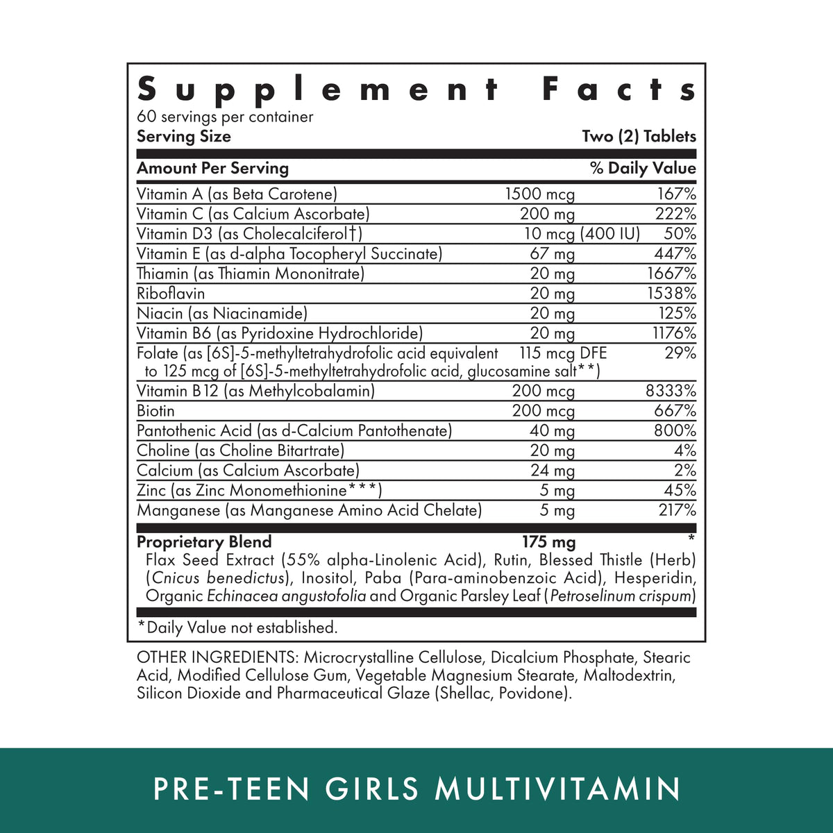 MICHAEL'S Health Naturopathic Programs Pre-Teen Girls - 120 Vegetarian Tablets - Daily Multivitamin for Healthy Growth & Development - Kosher - 60 Servings