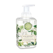 - Verdant greens and bright white petals are brought together in a captivating natural menagerie. Featuring premium ingredients like shea butter and aloe vera, this magnolia foaming hand soap gently cleanses and moisturizes while leaving skin lightly scented with floral and citrus notes. Generously sized, the attractive dispenser fits perfectly in our hand care caddies for an elegant sink companion.