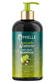Mielle Avocado & Tamanu Anti-Frizz Shampoo is a 12 fl oz pack designed to combat frizz and nourish hair. This shampoo is sulfate-free and enriched with avocado and tamanu oils, providing a luxurious cleansing experience for all hair types.