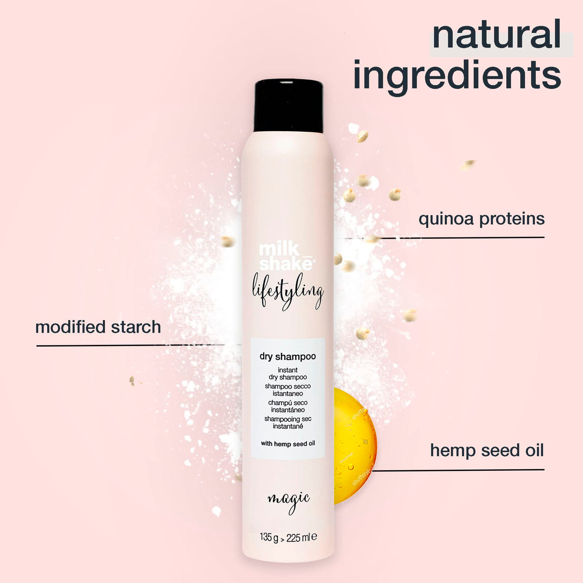 Refresh your hair instantly with milk_shake® Lifestyling Dry Shampoo. This magic-scented dry shampoo absorbs excess oil and revives your hair's volume and freshness without water.
