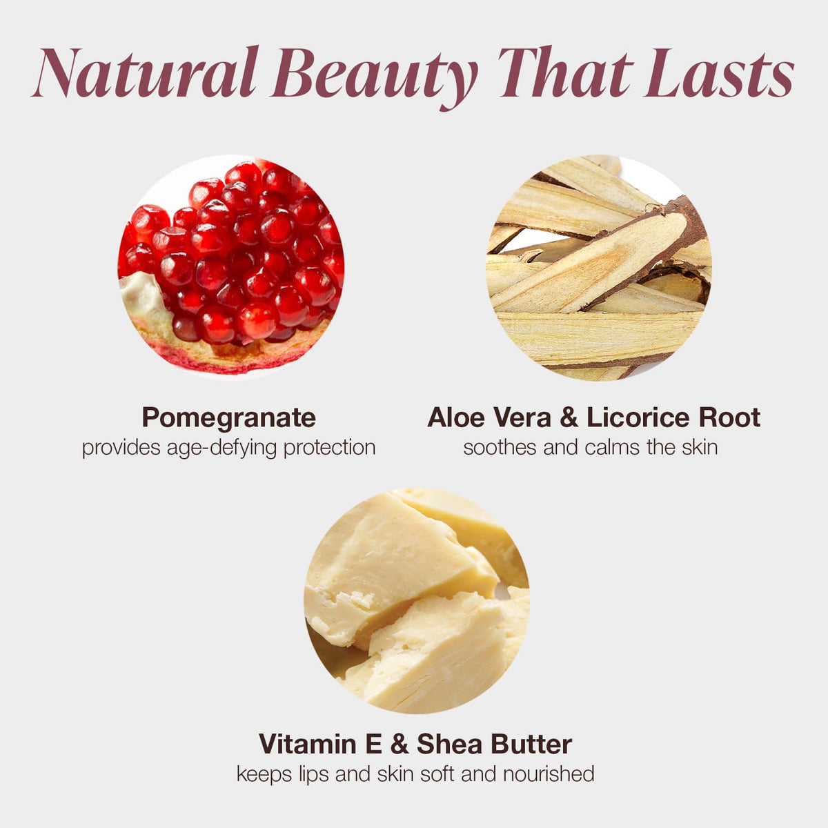 Ingredients: Octyldodecyl Stearoyl Stearate, CaprylicCapric Triglyceride, Butyrospermum Parkii Shea Butter, Copernicia Cerifera Carnauba Wax, Simmondsia Chinensis Jojoba Seed Oil, Euphorbia Cerifera Candelilla Wax, Olea Europaea Olive Fruit Oil, Silica, Mica, Tocopheryl Acetate, Tin Oxide, Carthamus Tinctorius Safflower Seed Oil, Punica Granatum Pomegranate Extract, Camellia Sinensis White Tea Leaf Extract, Aloe Barbadensis Aloe Vera Leaf Extract, Glycyrrhiza Glabra Licorice Root Powder, Lonicera Caprifolium Honeysuckle Flower Extract, Lonicera Japonica Honeysuckle Flower Extract. MAY CONTAINPEUT CONTENIR Titanium Dioxide CI 77891, Carmine CI 75470, Manganese Violet CI 77742, Iron Oxides CI 77491