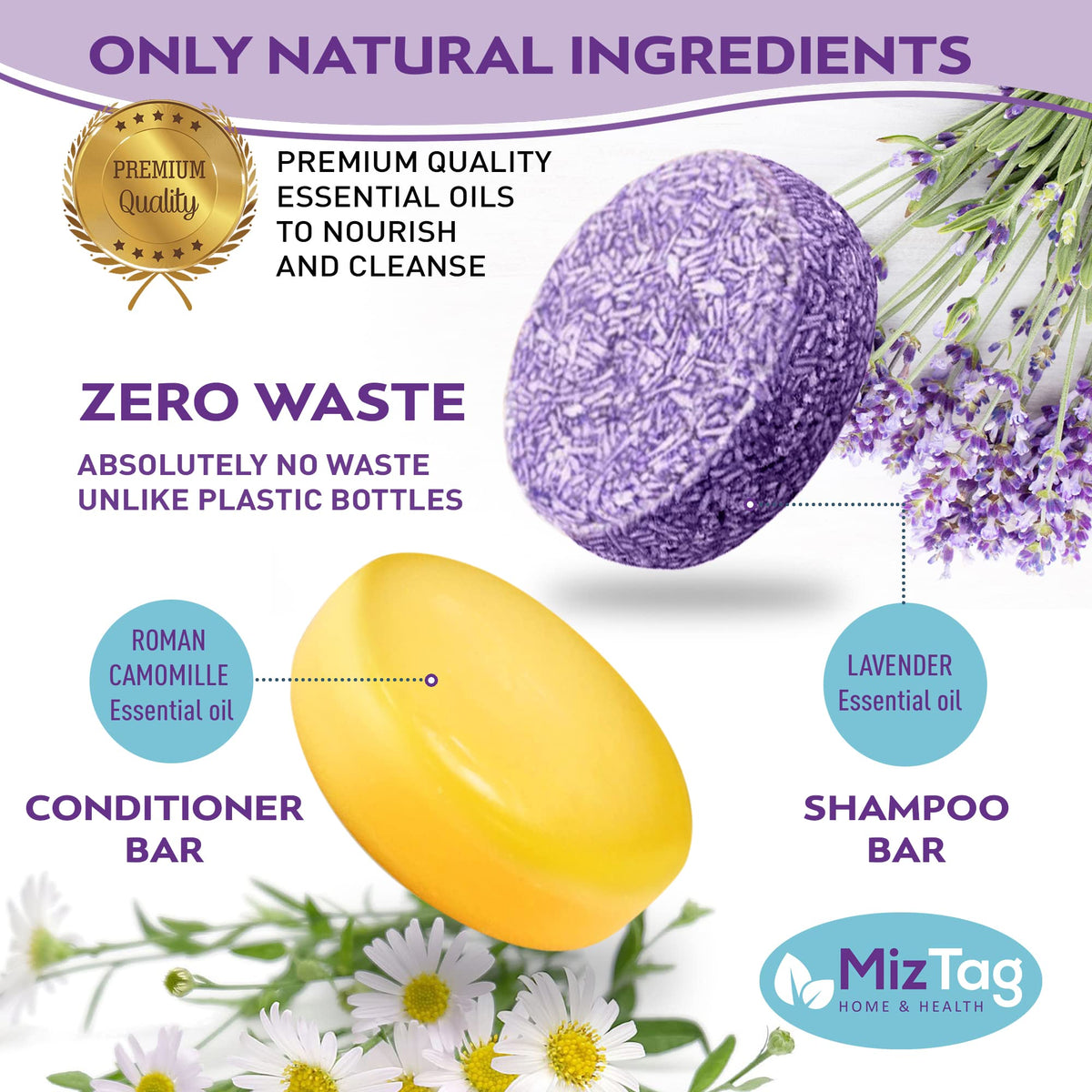 Miztag Home & Health Shampoo and Conditioner Bar Set - 5pcs with Holder & Travel Tins - Vegan, Sulfate-Free, Paraben-Free - Eco-Friendly Gift for Women