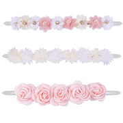 mligril 3pcs Baby Girl Floral Headbands Set-Elastic Hair Band Crown Flower Wraps for Newborn Infant Toddler (3, Pink)
