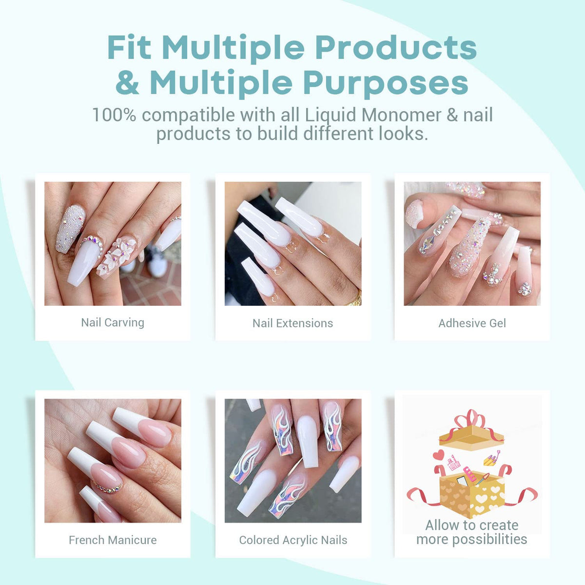 Modelones White Nail Acrylic Powder is a professional-grade product designed for nail extensions, offering a big capacity for various nail art designs.