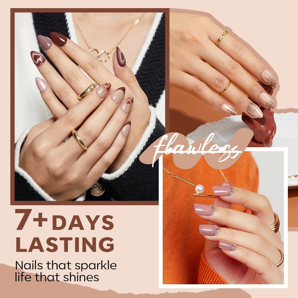 modelones Brown Nail Polish Set 6 Colors, Nude Burgundy Glitter Fall Winter Quick Dry Mini Nail Lacquer Kit Dark Red Nail Art DIY Home Salon Nail Art Manicure Gifts for Women Girls