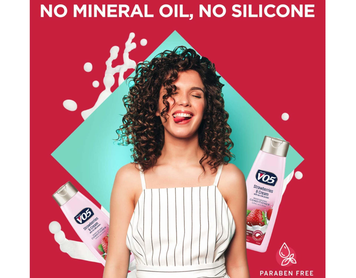Experience the nourishing benefits of Moisture Milks Conditioner Cream by Vo5. Enriched with the essence of strawberries, this conditioner provides deep hydration and care for your hair.