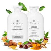Moisturizing & Strengthening Shampoo and Conditioner Set is a natural hair care duo enriched with biotin, jojoba, and argan oil. This sulfate-free formula is anti-hair loss, hydrating, and perfect for dry, damaged, and colored hair, providing frizz control and nourishment.