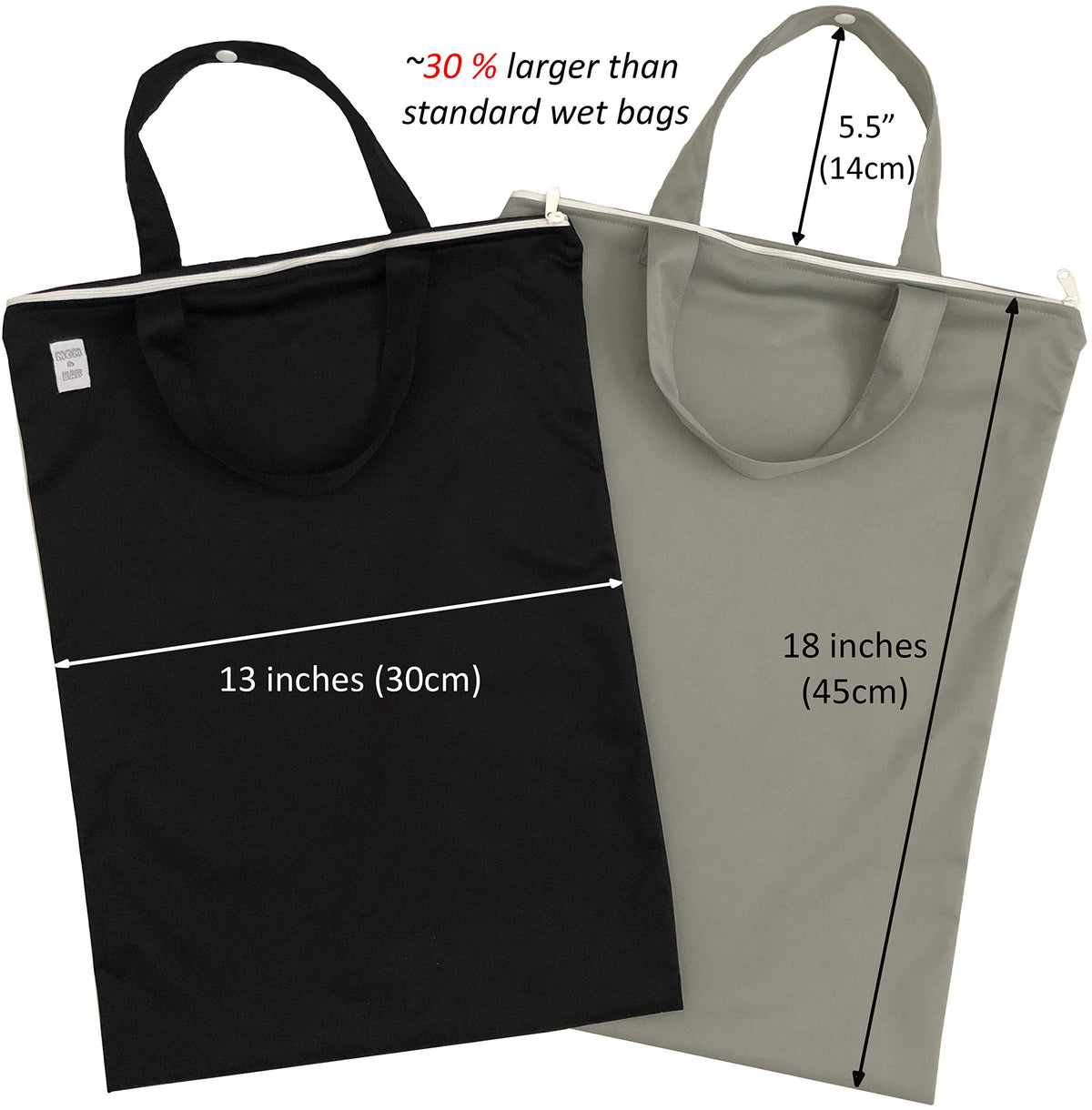 MOM & BAB Wet Bags for Baby Cloth Diapers, Swimsuits and Towels, Travel, Wet Dry Bag for Diaper Bag, Breast Pump Parts, Gym | Water & Odor Resistant (Black & Gray)