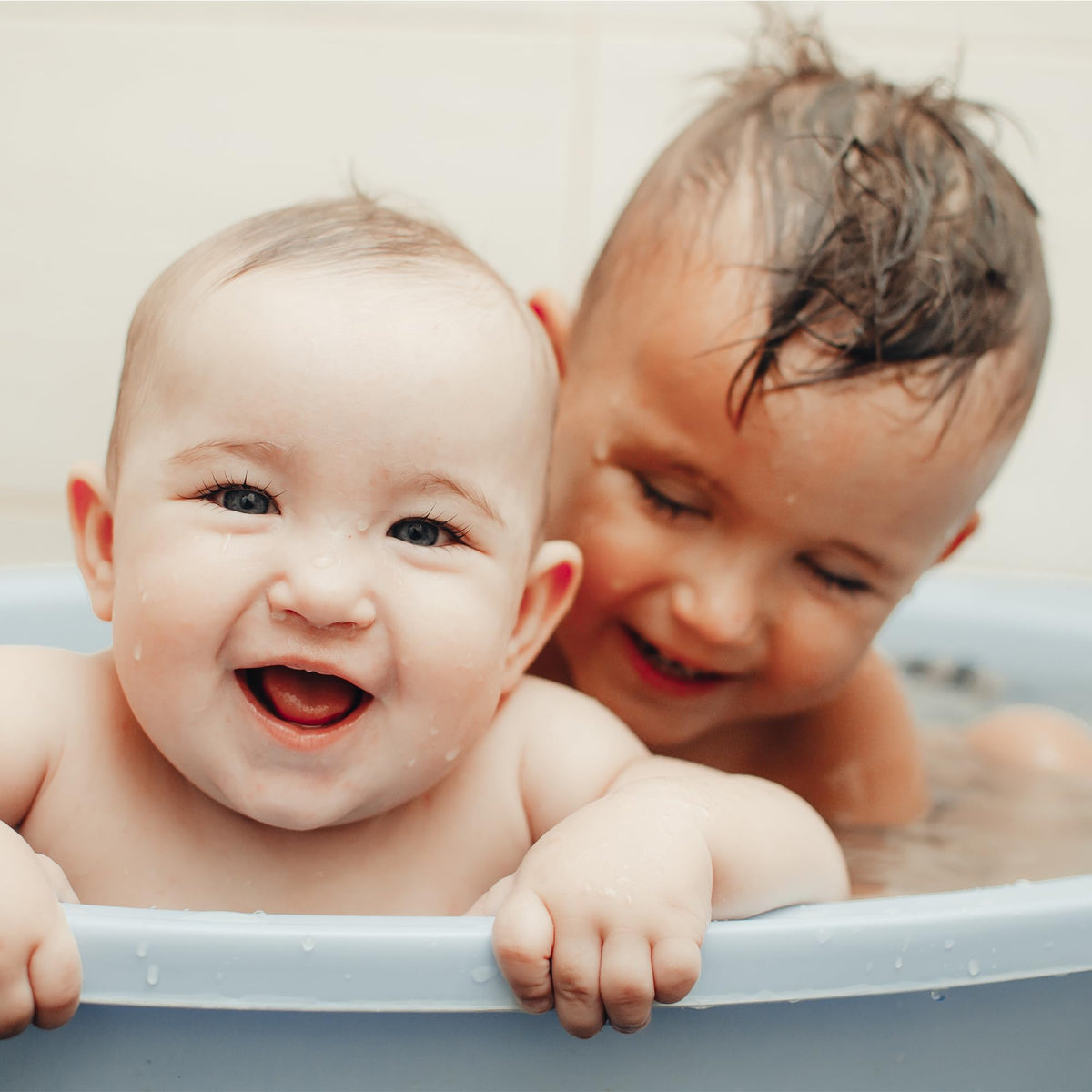 Squeeze a generous amount of shampoo onto a wet palm and lather gently over the babys hair and scalp. Rinse thoroughly.