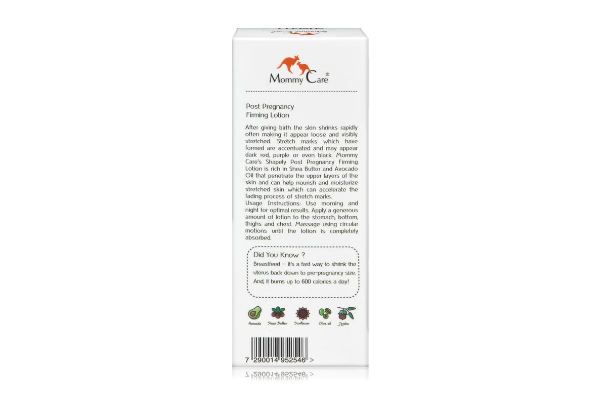 Shapely Post-Pregnancy Firming Lotion for skin recovery. Mommy Care lotion tightens skin, reduces stretch marks, and boosts elasticity after pregnancy.