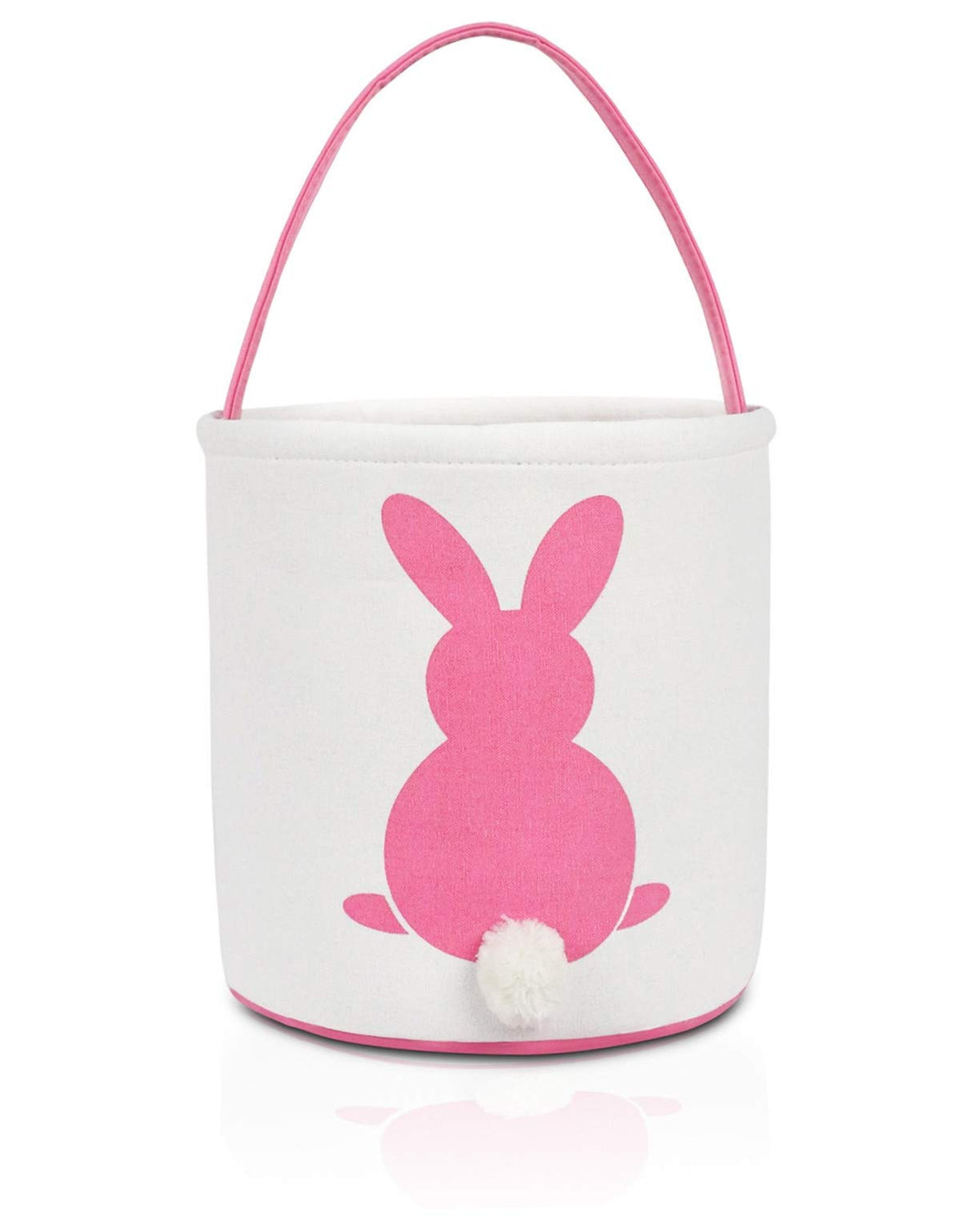 MONOBLANKS Easter Bunny Basket Bags for Kids Boys Girls, Rabbit Bucket Tote for Easter Egg Hunts Decorations Candy Gifts Storage (Pink)