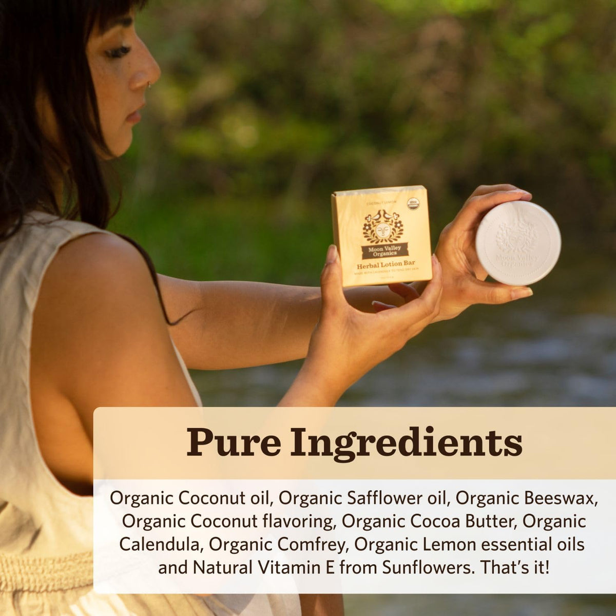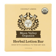 Moon Valley Organics Herbal Lotion Bar in Coconut Lemon is a luxurious blend of Calendula, Comfrey, and Beeswax that heals and restores chapped skin. This soothing bar provides intense hydration and nourishment for your skin.