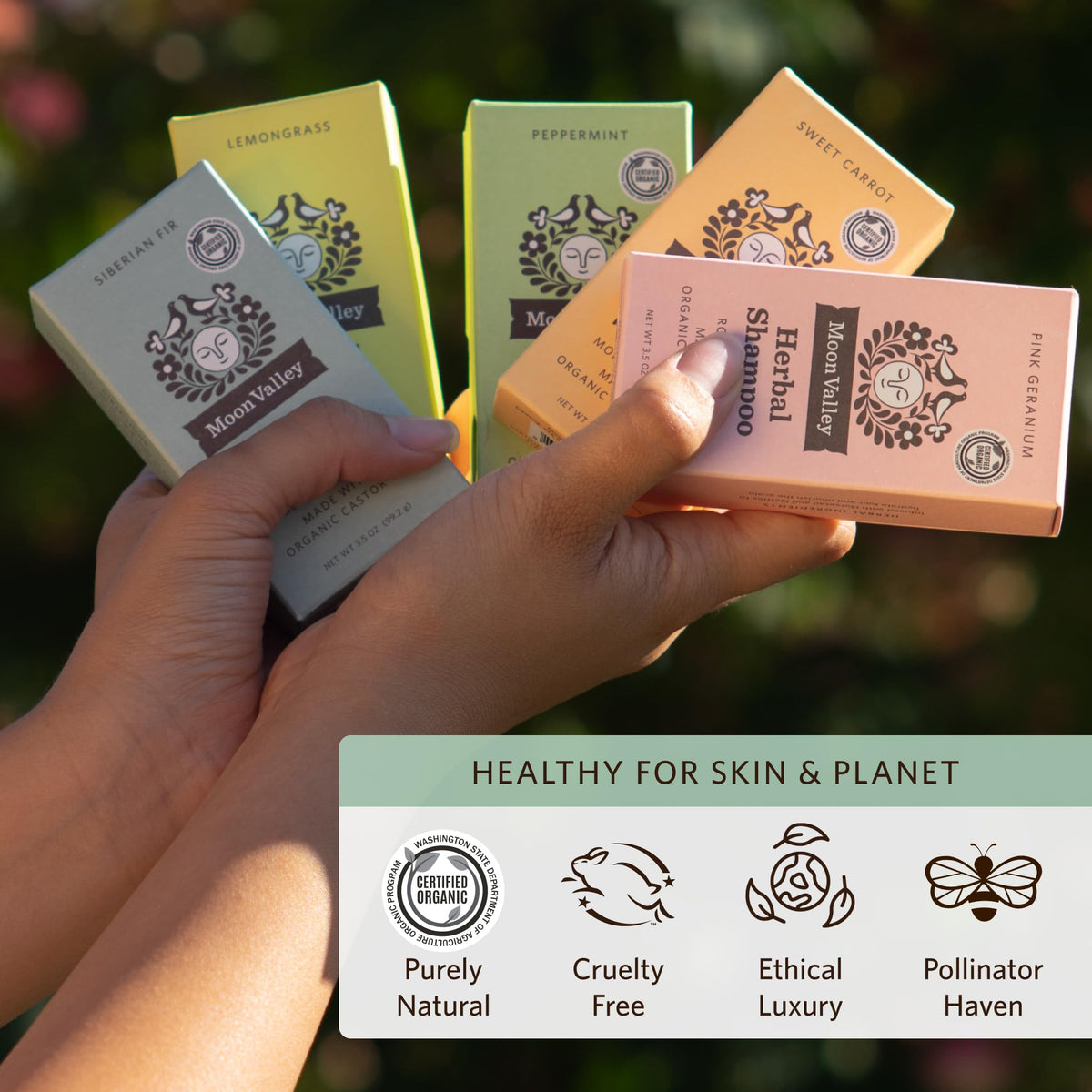 Revitalize your hair with Moon Valley Organics HERBAL SHAMPOO BAR in Siberian Fir. This 2-pack of shampoo bars cleanses and nourishes your hair with natural ingredients, leaving it soft, shiny, and beautifully scented.