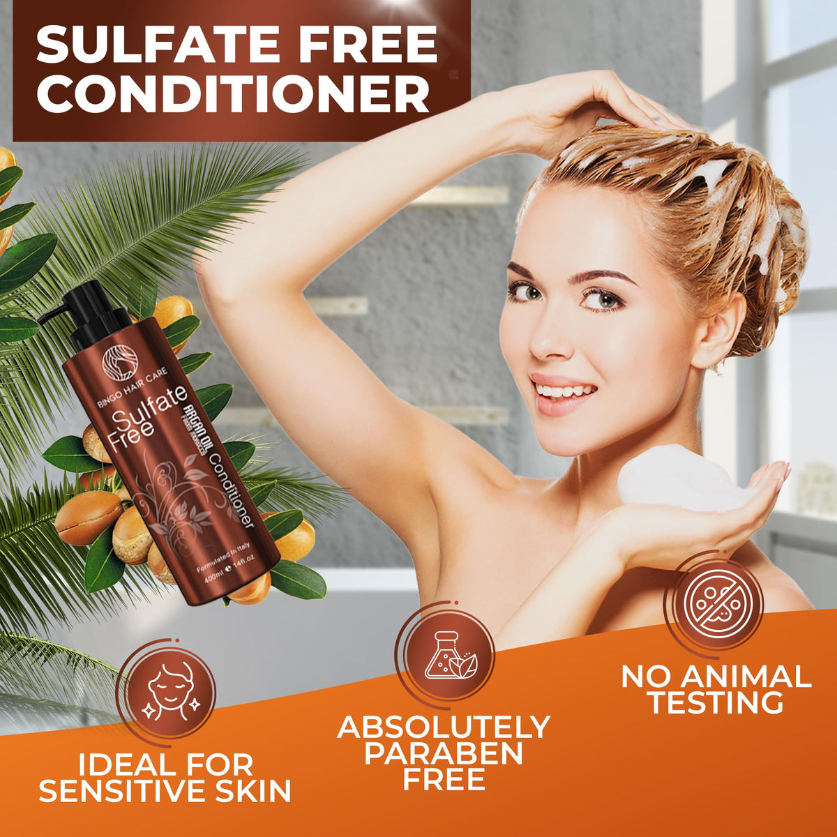 Nourish and hydrate your hair with the Moroccan Argan Oil Conditioner. This sulfate-free formula is designed to provide deep moisturization and care for color-treated, curly, frizzy, and damaged hair.