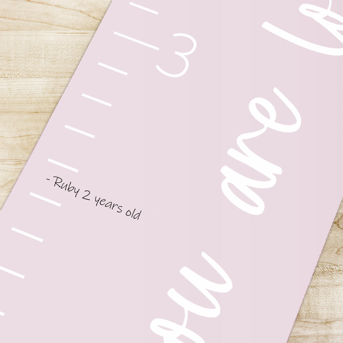 Morxy Canvas Growth Chart for Kids - Unisex Room Wall Decor - Measuring Height Wall Tape (Loved Beyond Measure- Pink)