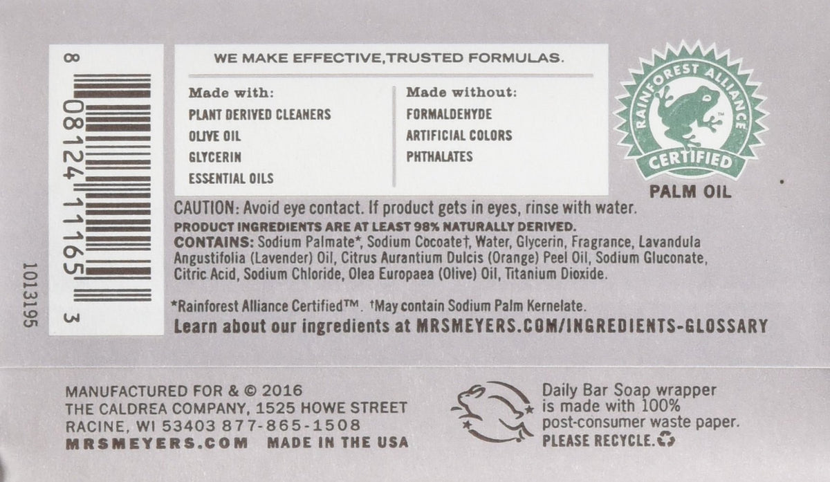 Mrs Meyers Bar Soap Hard 5.3oz Lavender Scent (12 Pack)