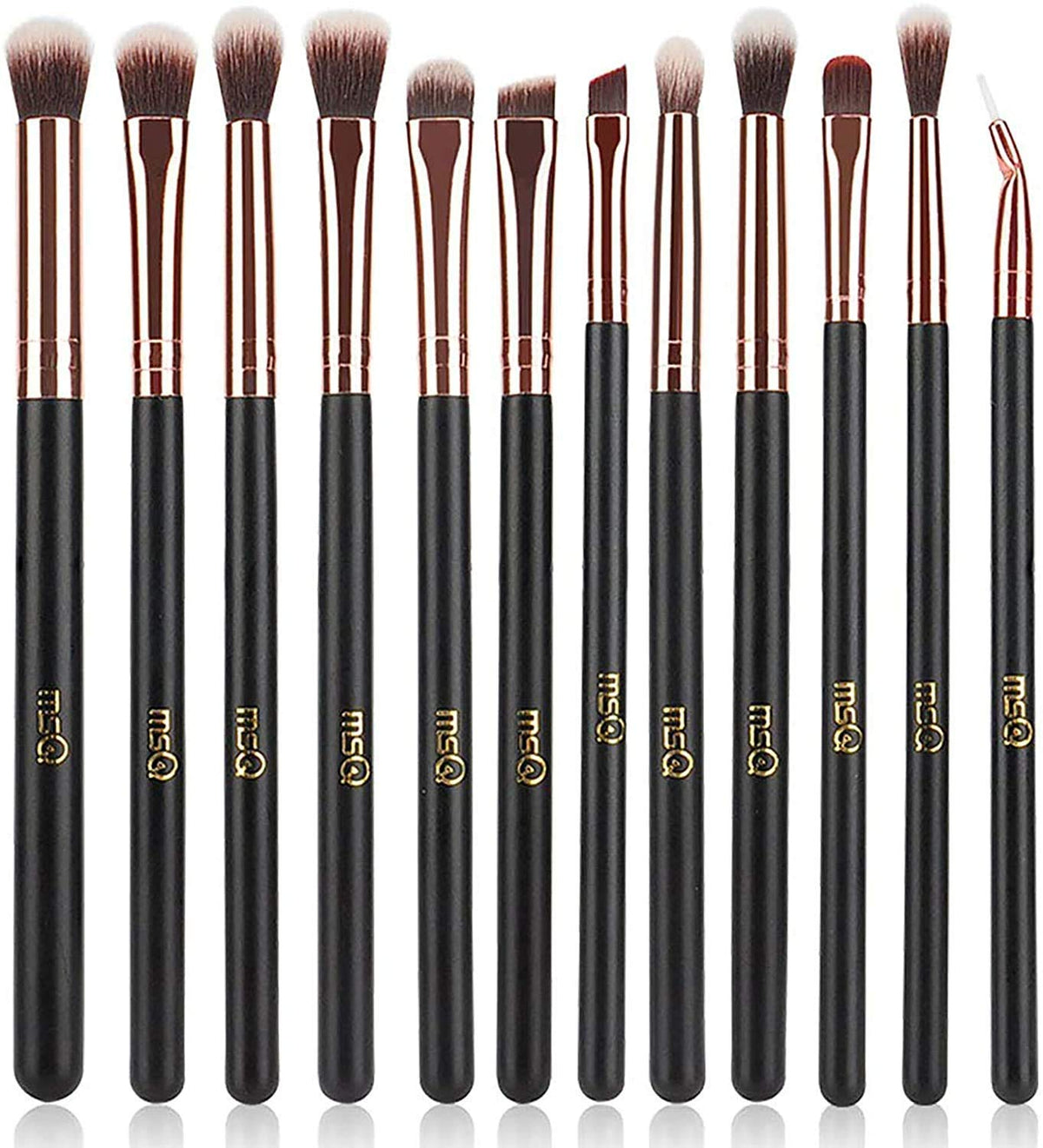 MSQ MSQ Eye Makeup Brushes 12pcs Rose Gold Eyeshadow Makeup Brushes Set with Soft Synthetic Hairs & Real Wood Handle for Eyeshadow, Eyebrow, Eyeliner, Blending - Rose Gold(without bag)