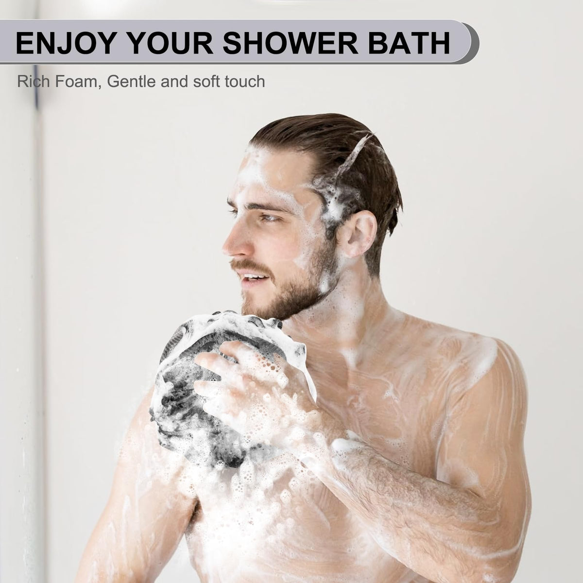 MTDLYICE Loofah Sponge XXL-100g 4 Pack, Bath Sponge Soft Mesh Shower Puff Loofah for Men, Exfoliating Body Scrubber for Women, Shower Accessories (Black)