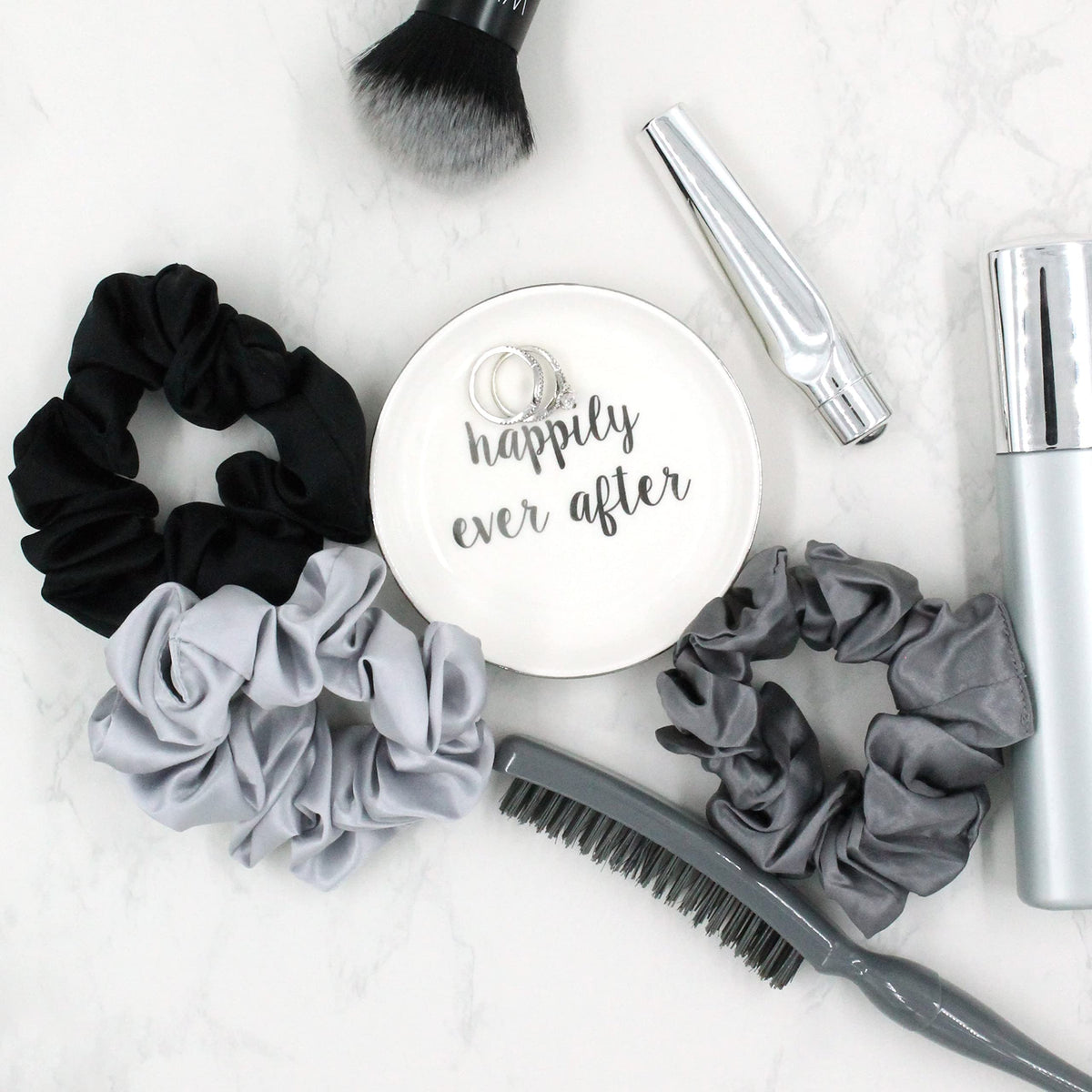 Mulberry Park Silks - Large - Black/Silver/Gunmetal (3 Pack) - 100% Pure Silk Hair Scrunchies - Gentle On All Hair Types - OEKO-TEX Certified