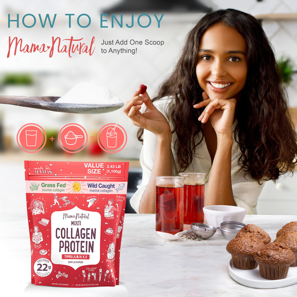 Multi Collagen Protein Powder Value Pack offers 100 servings of unflavored & hydrolyzed collagen peptides derived from Grass Fed Beef, Wild Fish & USA Eggshell, providing a complete collagen solution for women's health and wellness.