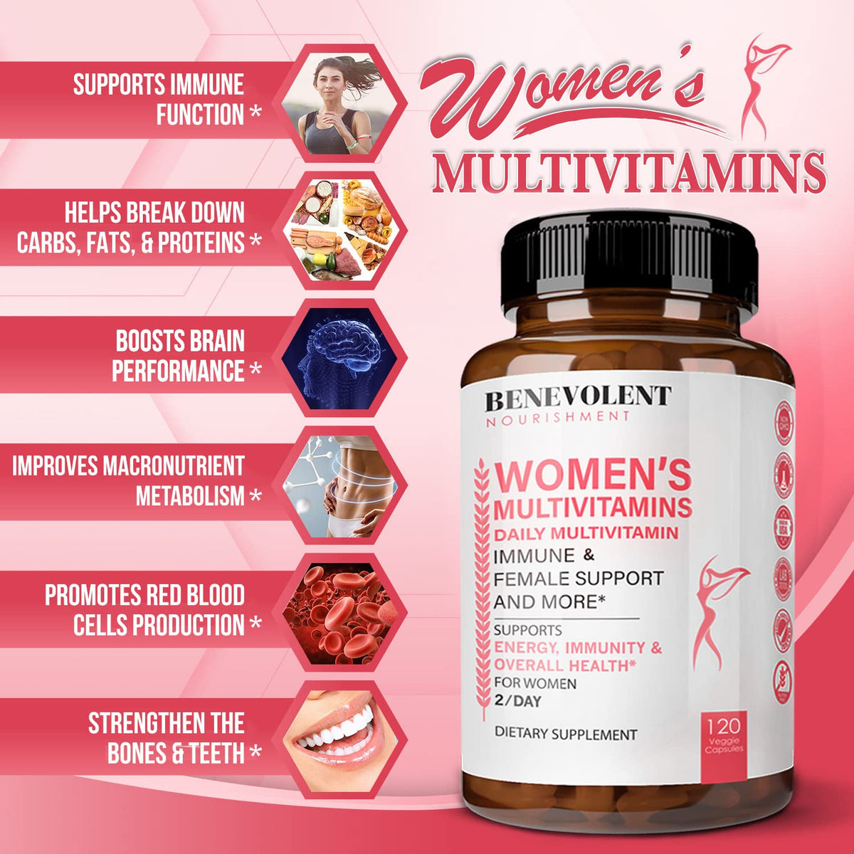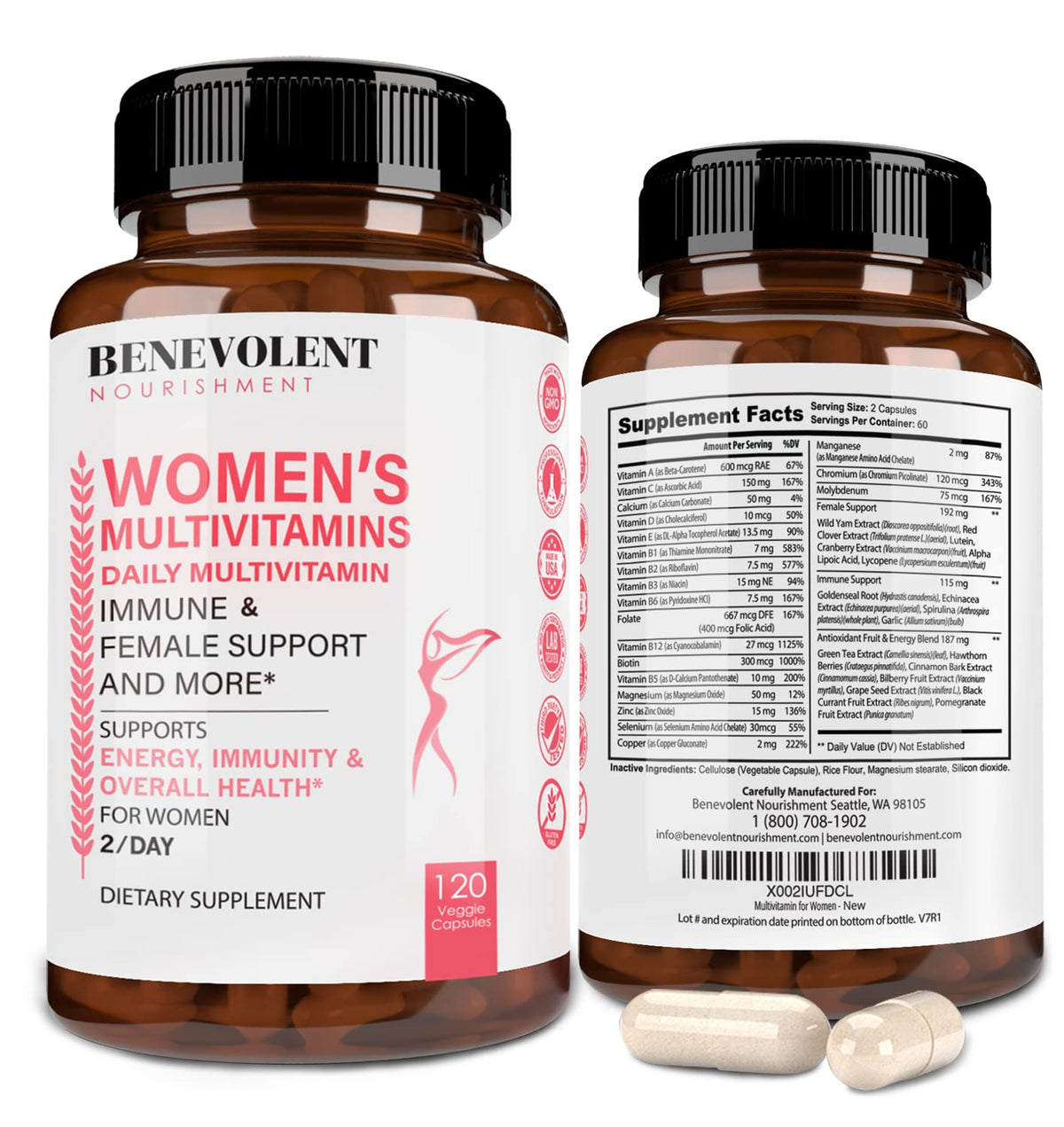 Multivitamin for Women - Supplement for Energy, Immunity, & Female Support - Daily Vitamins for Women with Biotin, Calcium, Magnesium - Non-GMO, Vegetarian Women’s Multivitamin - 120 Caps