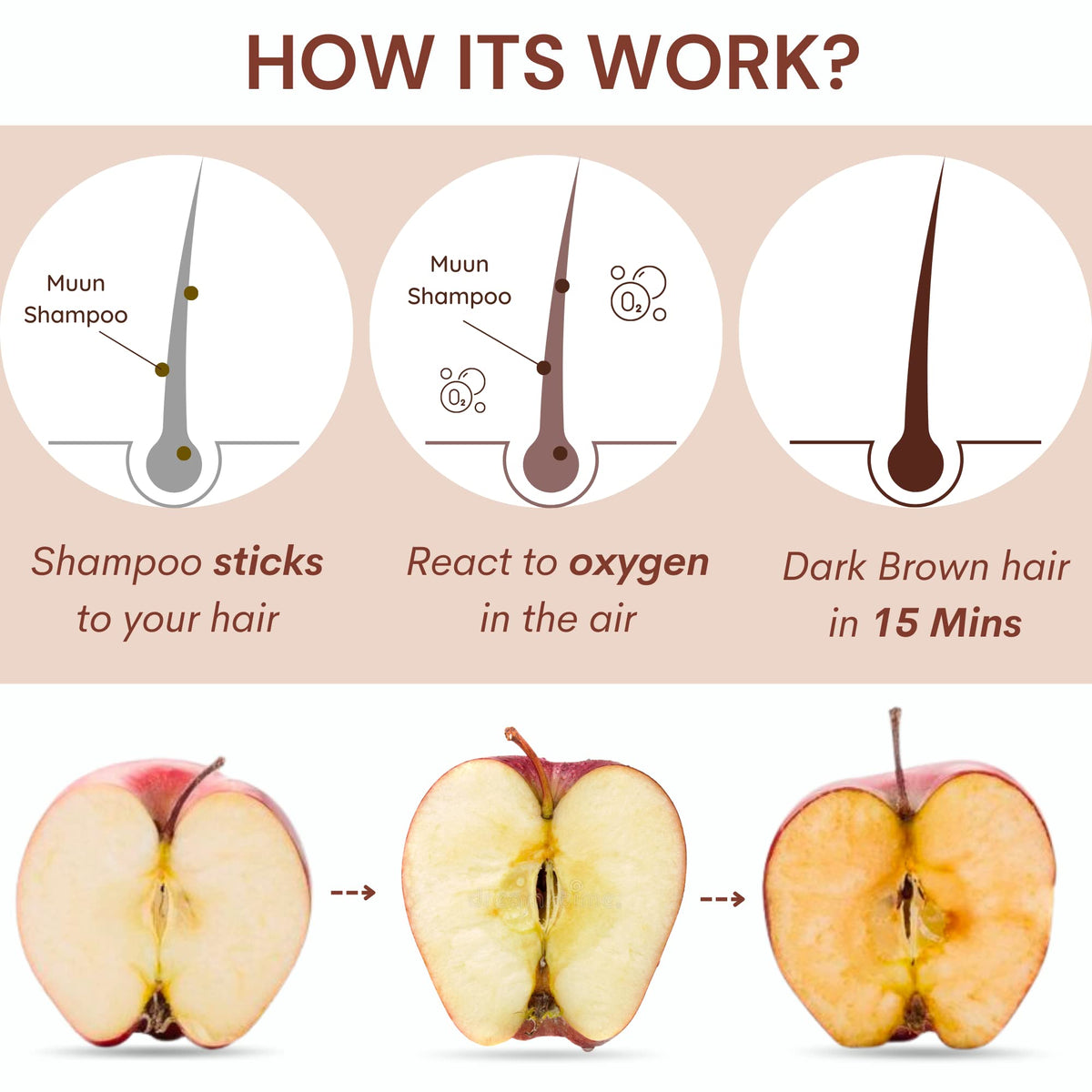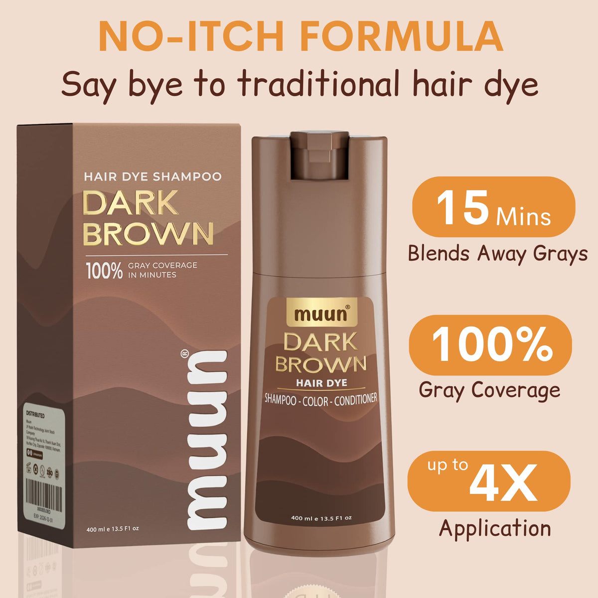 Muun Dark Brown Hair Dye Shampoo - 3-In-1 Ammonia Free Hair Color Shampoo for Gray Hair Coverage for Women and Men in minutes with Herbal Natural Ingredients 400ml